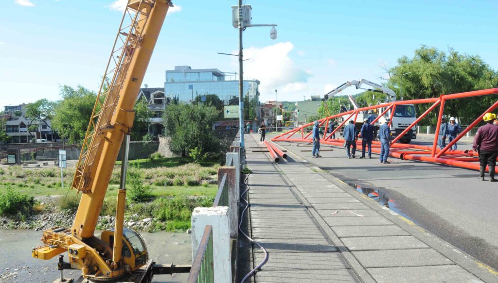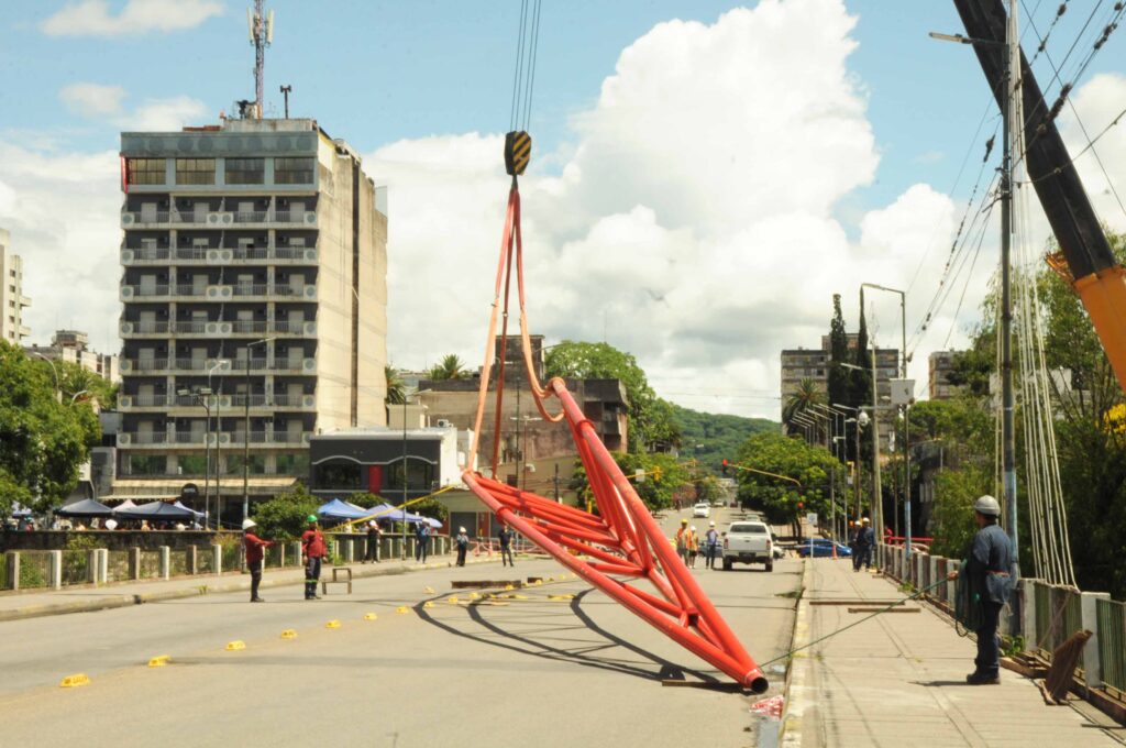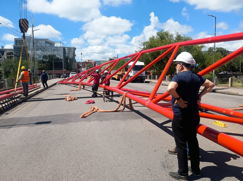 Tal como fue anunciado, se procedió al corte total de la circulación vehicular sobre Puente Gorriti con motivo del montaje de la segunda pasarela peatonal que unirá las márgenes del Río Xibi Xibi generando una mayor conectividad y funcionalidad del pulmón verde de nuestra ciudad. El intendente de San Salvador de Jujuy, Raúl “Chuli” Jorge, estuvo presente, supervisando personalmente las tareas de armado, traslado e instalación de la estructura.