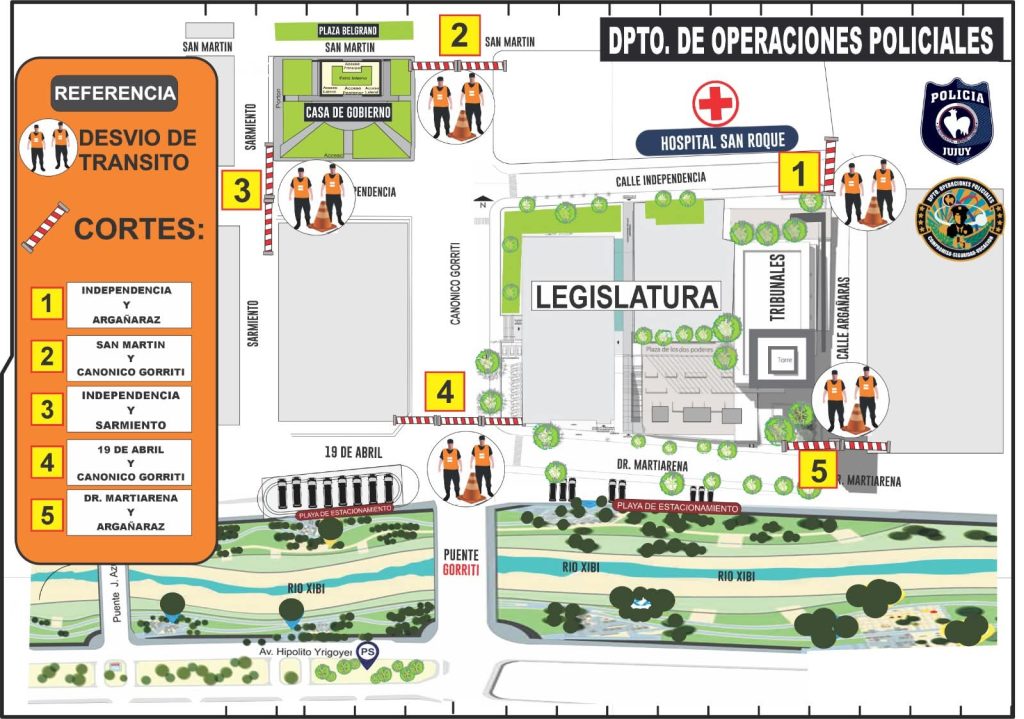 En el día de la fecha se lleva a cabo la “Apertura del 165° Período de Sesiones Ordinarias 2026”, motivo por el cual la Policía de la Provincia de Jujuy informa a la comunidad que se ha dispuesto un operativo especial de seguridad y ordenamiento vial, con cortes y desvíos de tránsito en distintos sectores de la ciudad.