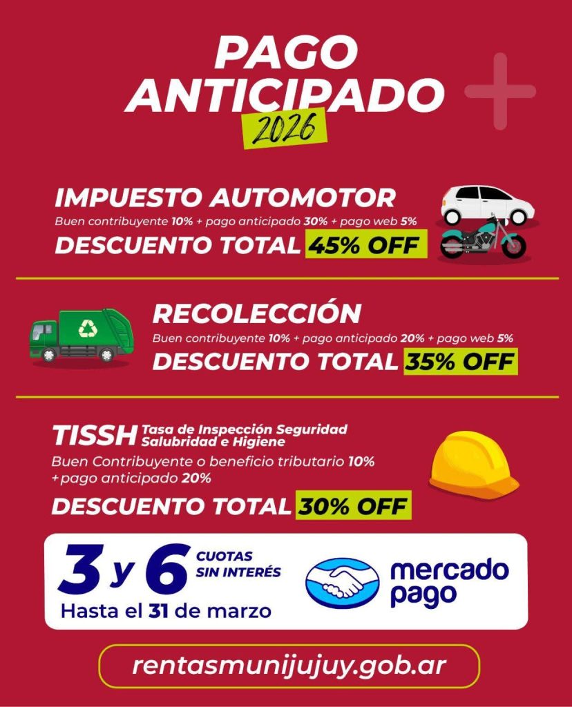 Como novedad, se incorporó la posibilidad de abonar mediante Mercado Pago, lo que permite utilizar distintas tarjetas de crédito en 3 o 6 cuotas sin interés. Esta opción se encuentra disponible tanto para el pago anticipado como para otros tributos municipales, aunque los beneficios del programa estarán vigentes únicamente hasta la fecha límite establecida.